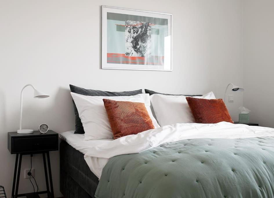 Two-Bedroom Apartment. This apartment features a sauna. This spacious apartment features 1 living room, 2 separate bedrooms and 2 bathrooms with a walk-in shower and a bath. In the kitchen, guests will find a stovetop, a refrigerator, a dishwasher and kitchenware. The air-conditioned apartment features a flat-screen TV with streaming services, a washing machine, a coffee machine, a seating area as well as city views. The unit has 4 beds.